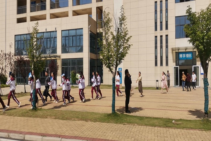 2025年5月12日是我国第 17 个全国防灾减灾日。上午9时20分,随着急促的警报声响起,我校首次全校规模的实战疏散演练正式启动。在教学楼、实训楼、慧中楼等上课的全体师生们迅速行动,在班主任和任课教师的指挥下,按照既定疏散路线,双手抱头、弯腰低姿、不推挤、不喧哗,快速而有序地撤离到校足球场、天使广场及中草药园三个集合地点,并由各集合地点分别完成相应的点名及点评环节。整个演习过程紧张有序,展现出学校日常安全教育的扎实成果。